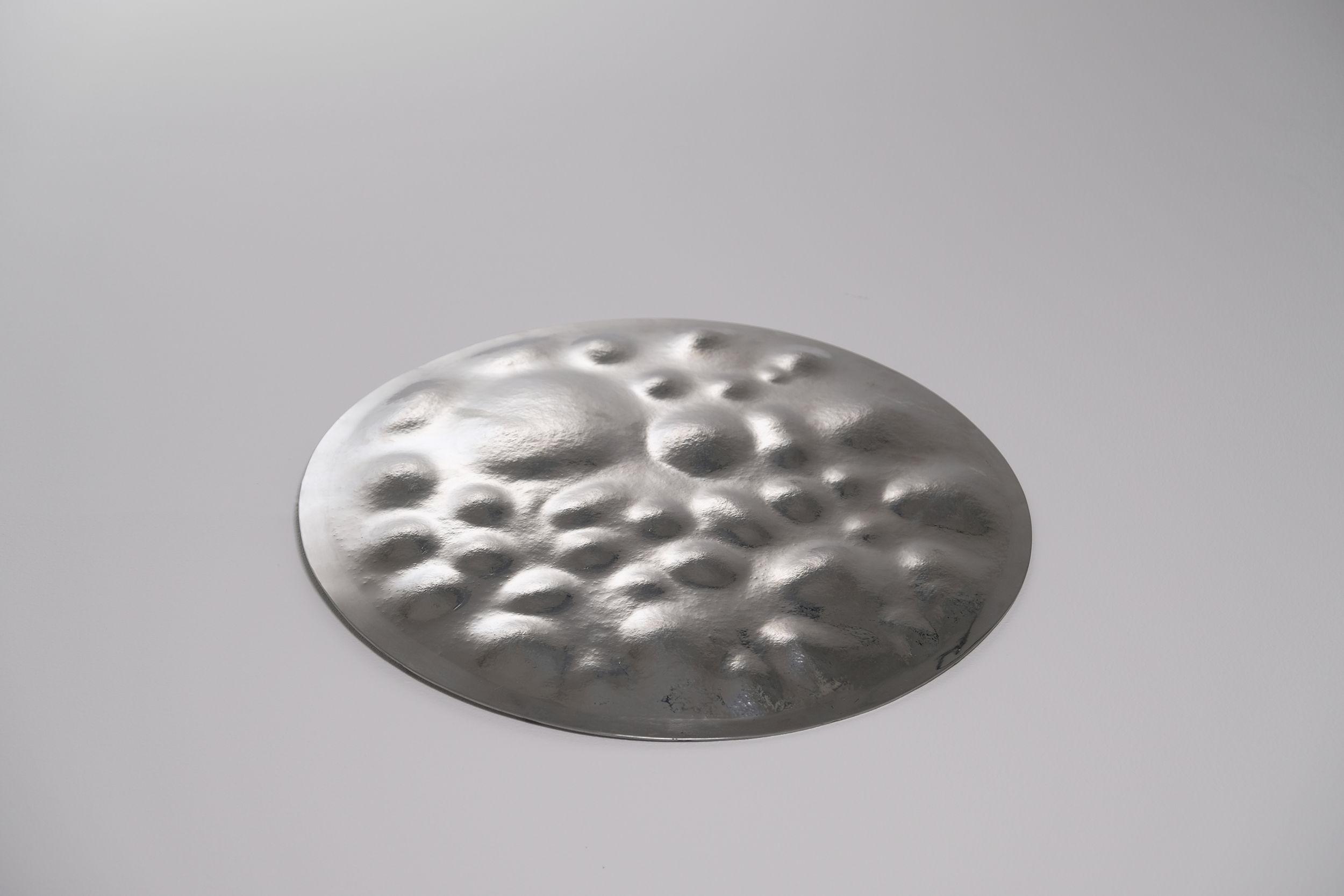 The circle is considered as a symbol of completeness. It has no beginning and no end. The landscaped circle was produced to illustrate the production method and it’s inherent potentials. The production process Hammered Scapes enables to form the sheet metal in a painternly way. The circle was intuitively created and freehand hammered.