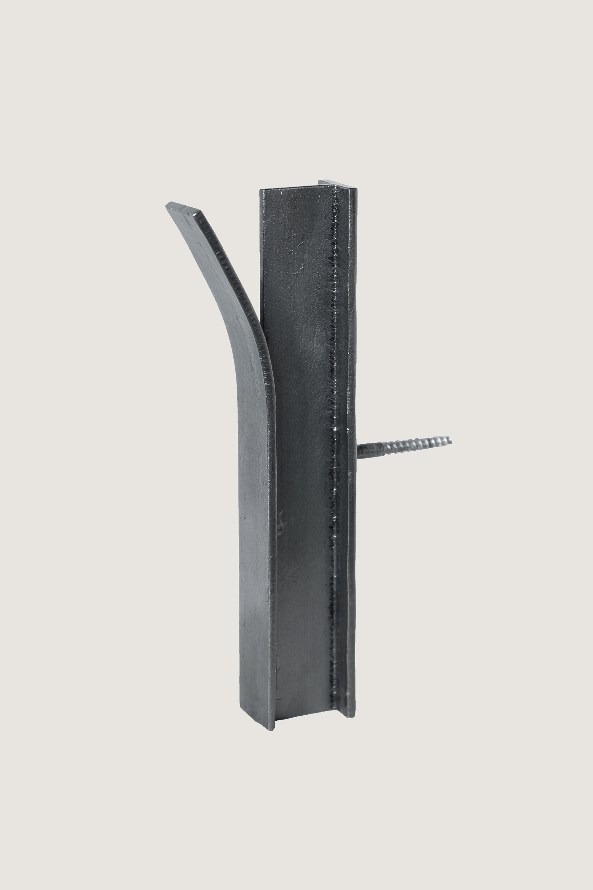 The T-beam is probably the most iconographic structuring object of the industry. Through small interventions of the halffinished material, a wall hook collection was created from T, H, I and L-profiles. The graphic playful cuts and bends add different characters to the hooks, which remind us of their original state as a supporting structure material on a closer look.