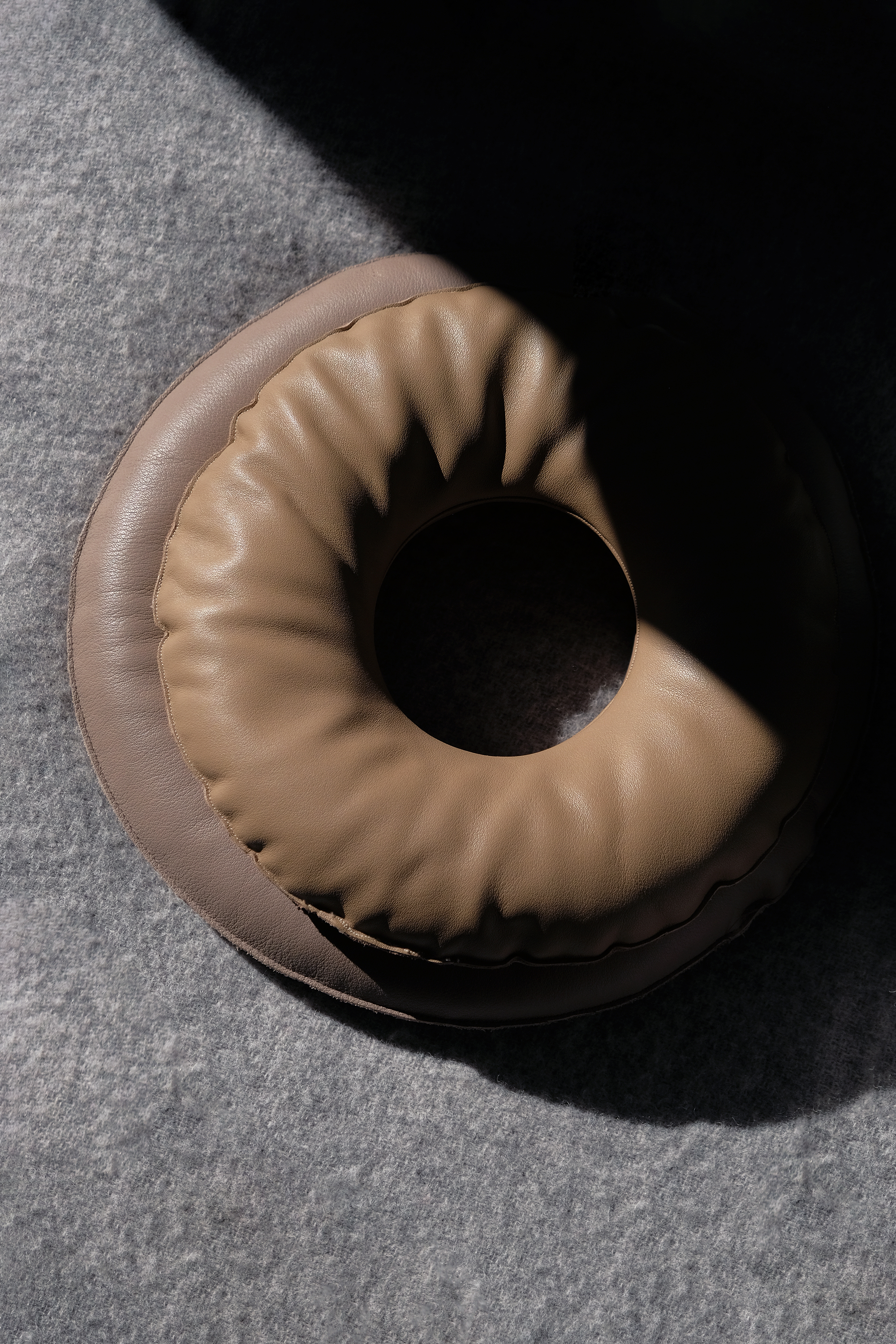 The "leather weights" series is part of a wider range of objects which find their purpose in the intersection of a human-driven physical engagement and a sculptural approach. The weights serve multiple functions across three distinct phases: exertion, relaxation, and conscious presence all intertwined with the interaction through the human body.